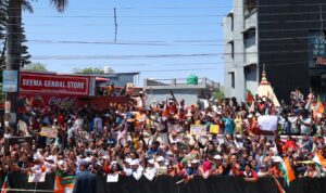 मंदिर दर्शन के बाद प्रधानमंत्री लगभग 12 किलोमीटर लंबा मार्ग सड़क से तय करते हुए कैंट क्षेत्र स्थित सभा स्थल तक पहुंचे। इस दौरान मार्ग के दोनों ओर हजारों की संख्या में युवा, महिलाएं और आमजन उमड़ पड़े। “भारत माता की जय” के नारों से पूरा वातावरण गूंज उठा और हर कोई प्रधानमंत्री की एक झलक पाने को उत्सुक दिखाई दिया।