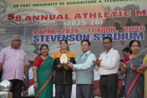 पंतनगर न्यूज़।(राजतंत्र टाइम्स) गोविन्द बल्लभ पंत कृषि एवं प्रौद्योगिक विश्वविद्यालय पंतनगर की 58वीं वार्षिक खेल-कूद प्रतियोगिता 9 से 11 अप्रैल, 2026 तक विश्वविद्यालय के स्टीवेन्सन स्टेडियम में आयोजित की गयी। प्रतियोगिता का शुभारम्भ मुख्य अतिथि विश्वविद्यालय के कुलपति प्रोफेसर मनमोहन सिंह चौहान द्वारा दीप प्रज्ज्वलित कर किया गया तत्पश्चात् विश्वविद्यालय ध्वजारोहण कर मार्च पास्ट में प्रतिभागी छात्रावासों के दलों से सलामी ली। मार्च पास्ट में पंतनगर शिशु मंदिर के विद्यार्थियों ने बैण्ड दल द्वारा नेतृत्व किया गया तथा उनके पीछे एनसीसी कैडेट्स एवं विभिन्न छात्रावासो की टीमें ने मार्च पास्ट किया। विश्वविद्यालय के छात्र अली रहमान एवं अनुप्रिया आर्या ने समस्त प्रतिभागियों को खेल नियमों के साथ प्रतिभाग करने की शपथ दिलायी।