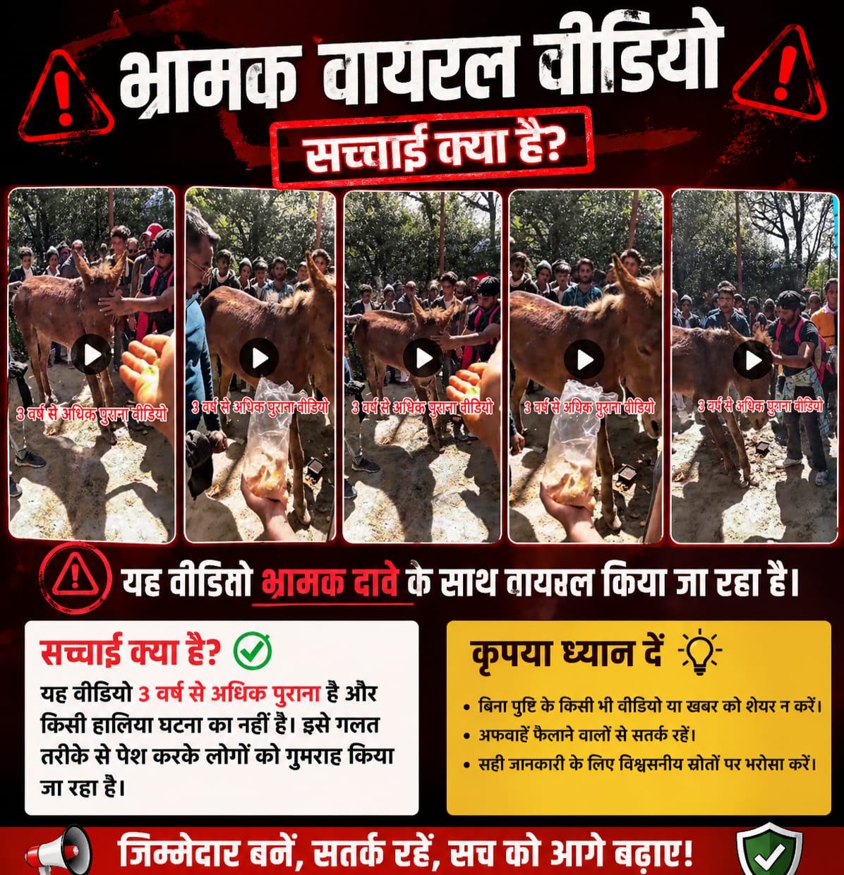 सोशल मीडिया पर घोड़े-खच्चर का 3 वर्ष से अधिक पुराना भ्रामक वीडियो किया जा रहा वायरल, प्रशासन सख्त