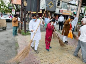 रुद्रपुर। (राजतंत्र टाइम्स) शासन के निर्देश पर महापौर विकास शर्मा ने आज मुख्य बाजार स्थित वीर हकीकत राय मार्ग से विशेष स्वच्छता अभियान का शुभारम्भ किया। उन्होंने झाड़ू से सफाई कर आम जनमानस को स्वच्छता की शपथ दिलाई।