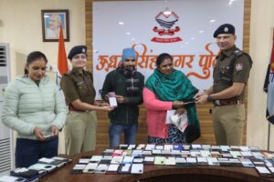 रुद्रपुर न्यूज। उत्तराखंड समाचार (Rajtantra Times) वरिष्ठ पुलिस अधीक्षक मणिकांत मिश्रा के हाथों अपने खोए हुए मोबाइल फोन पाकर लोग गदगद नजर आए। ऊधम सिंह नगर पुलिस की एसओजी एवं सर्विलांस टीम की कड़ी मेहनत के बाद जिले के विभिन्न थाना क्षेत्रों से 110 खोए हुए मोबाइल फोन बरामद किए गए।